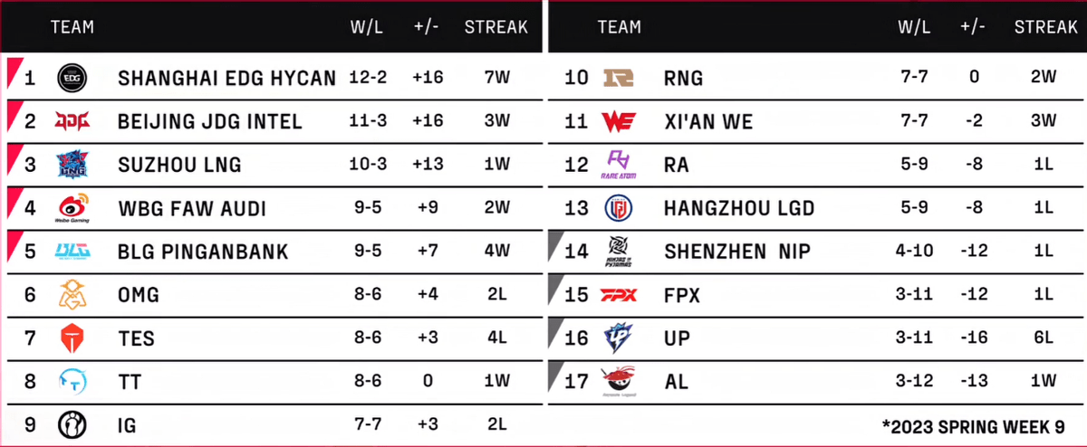 LPL春季赛的季后赛名额已经有不少队伍锁定,其中包括WBG和BLG等以往并不被看好的队伍。与此同时,TES虽然在赛季初期表现出色,但最近的连败却让他们在季后赛名额的争夺中面临很大的压力,成为了网友嘲笑的对象。NIP、FPX、UP以及AL也都已经确定无缘本次季后赛,而其他队伍则需要在接下来的比赛中拼尽全力争夺剩余的季后赛名额。这个LPL春季赛的常规赛阶段可以说是一场惊心动魄的比赛,带来了很多出人意料的结果,也让我们看到了LPL赛场上的激烈角逐和各种可能性。