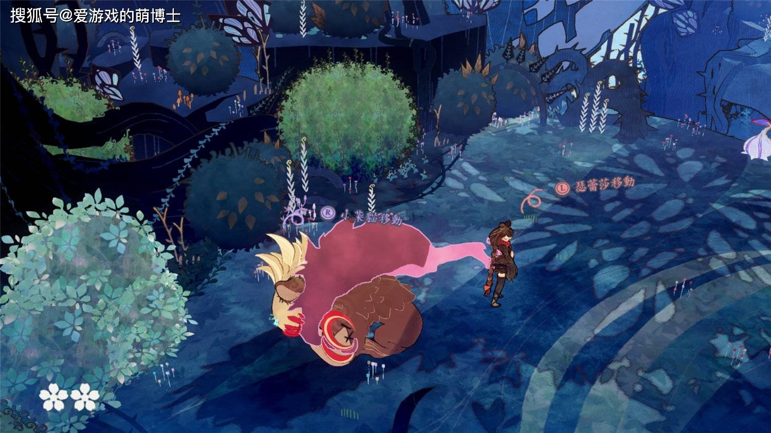 上面提到的“双角色”系统也是《猎天使魔女:起源》的一大特色,被恶魔附身的布偶柴猫可以在布偶形态和恶魔形态之间切换,布偶形态时由贝姐抱着行动,恶魔形态时两者就会分开各自行动。恶魔形态的柴猫是玩家的攻击手段,而在关卡里冒险时,就需要利用布偶形态和恶魔形态不同的特性来解谜。游戏里的谜题花样百出,没有重复单调的感觉。