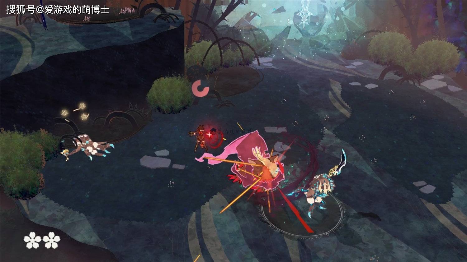 战斗方面,其实游戏早就放出了试玩版,网上也有相关的影片,如果你有兴趣的话可以去了解一下,《猎天使魔女:起源》是斜45度俯视式动作游戏,和《猎天使魔女》正统作品完全不一样。虽然操作相对来说较为简单,但是“双角色”的机制可玩性不错,同时打击感也还可以,不愧是白金工作室的手笔。