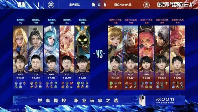 第二局比赛中,南京Hero久竞蓝色方,拿到了露娜+虞姬。重庆狼队红色方,拿到了镜+狄仁杰。开局重庆狼队击杀虞姬,拿下一血。5分钟,重庆狼队击杀对面中野,直推中路一塔,经济差拉开四千。8分钟,重庆狼队一波零换四,向鱼沈梦溪拿下三杀,直推上路高地。决胜团,重庆狼队先手秒掉上官婉儿,一波团灭南京Hero久竞,直推水晶,拿下赛点!