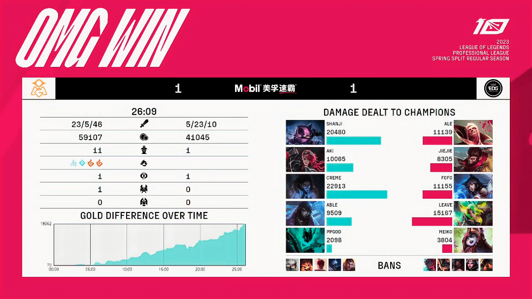[23:00] 对方主动出钩,EDG反打打出二换三;