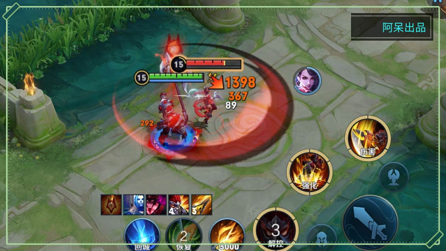 除非没有办法,可以直接使用大招。中后期之后一技能的冷却时间较短,也可以提前开启一技能,在强化普攻结束之前突进到敌人身边,这样就能够打出两发一技能的强化普攻。