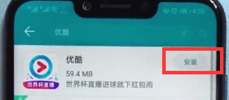 3、输入软件名字后,我们就可以点击右上角的搜索图标来搜索软件了,一般是输入就会出现软件,以优酷为例,如下图输入优酷,