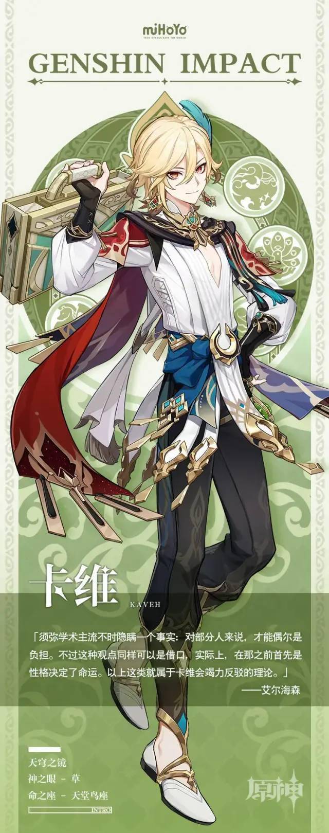 这两位角色原神官方都已发布立绘,肯定会在3.6版本上线的。两位都是草系角色,白术是5星,卡维是4星。根据一般理性而言,新5星角色一般是在上半卡池,而新4星角色一般会和新5星角色错开,在下半卡池。