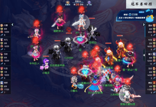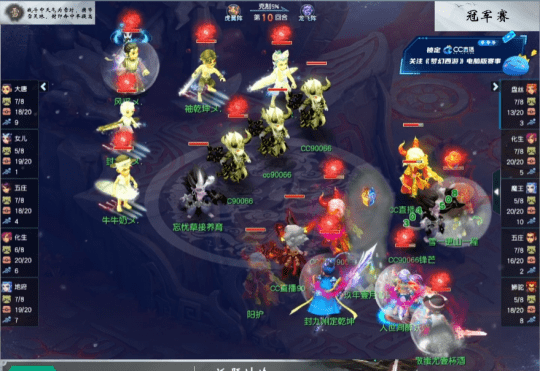 比赛一开场,紫禁城就开启点杀模式。在第一回合点掉狮驼岭后,于比赛第五回合将珍宝阁魔王寨点倒。这两波操作下来,很好的保证了己方善恶召唤兽生存。