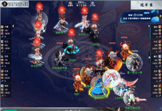 比赛第13回合,由于珍宝阁狮驼、魔王输出较高,令紫禁城的善恶攻宠很难生存。于是,紫禁城再度选择压制珍宝阁狮驼岭。