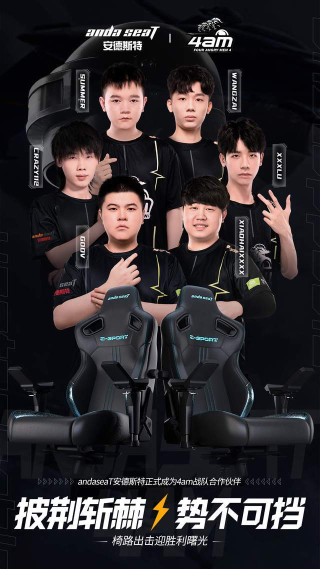 作为4AM战队官方指定电竞椅赞助商,andaseaT安德斯特将为选手提供专业电竞桌椅,提供舒适的电竞体验。