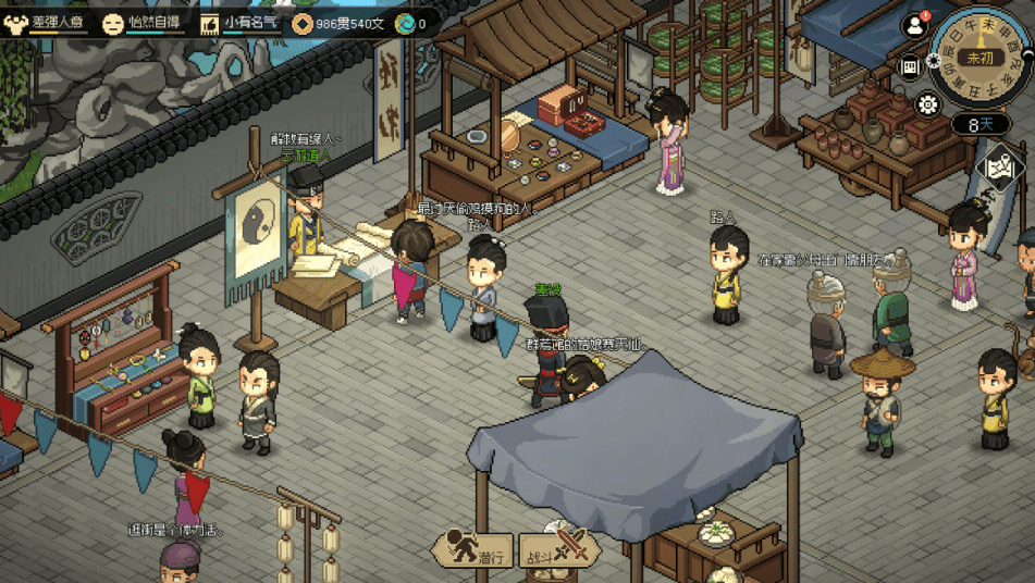 开局roll属性,剧情上的各种冲突,去少林寺偷学易筋经之类的官方“邪道”,还有各式各样的生产采集小游戏等等,让人爱不释手。