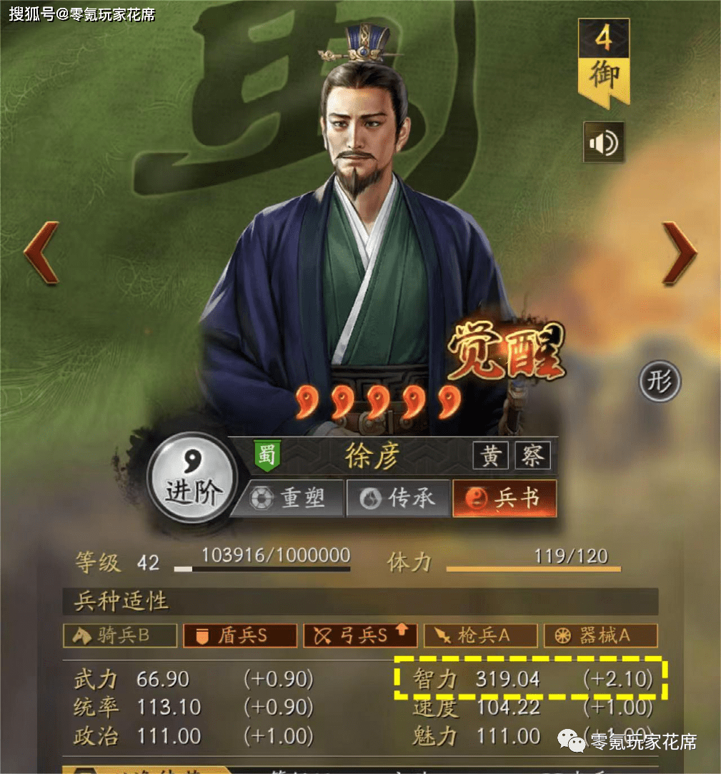 看上图:320智力的新武将,50级接近360智力。