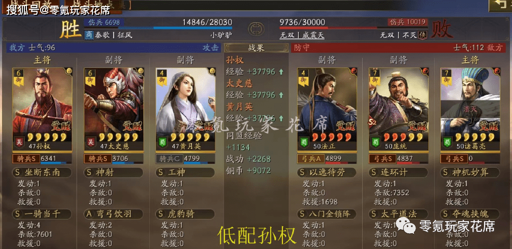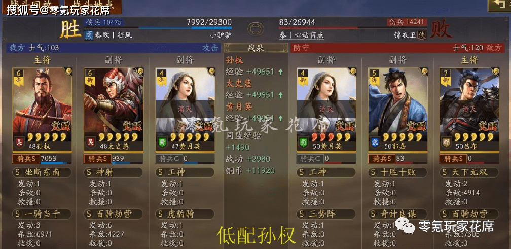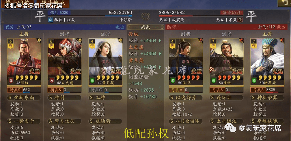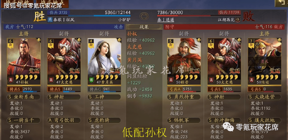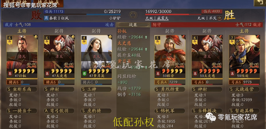 敌人用的是凌统辅助,我方最终因为是残血而失败了,如果满兵不会输。