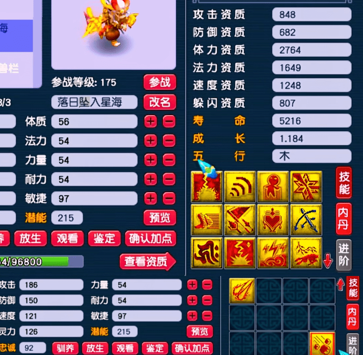 龙魂打上去之后,玩家的心跳到了嗓子眼,慢慢打开召唤兽的技能表。