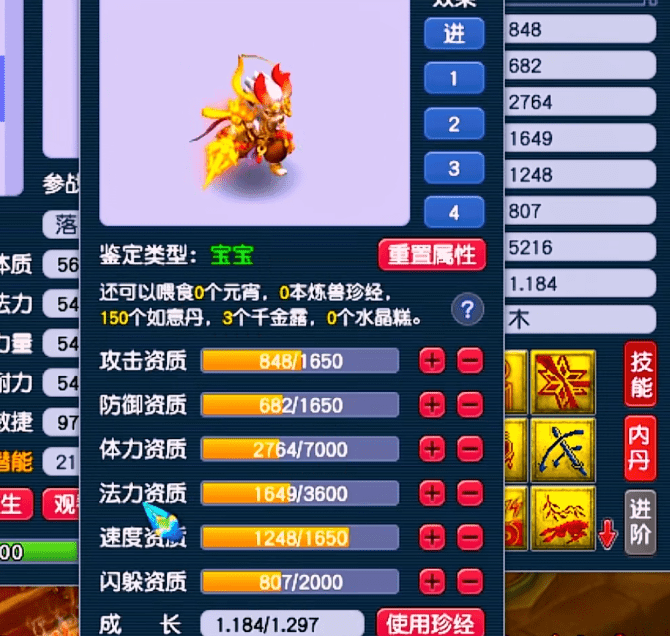 在三特殊的光辉下,这只毗舍童子宝宝的资质和成长欠缺就显得无足挂齿了。