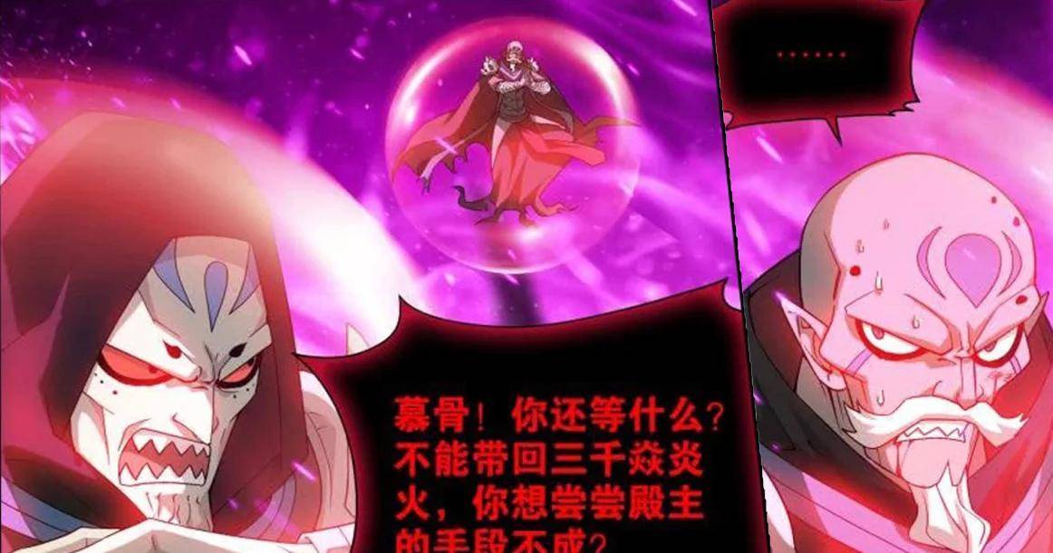 在慕骨召唤出三老之后,慕骨本以为自己可以轻松收服三千焱炎火,没想到三千焱炎火反抗激烈,就算是慕骨与三老联合起来都无法控制住三千焱炎火,由于三老只是慕骨请来的帮手,根本没有义务全力以赴,于是其中一位队友出言呵斥慕骨,要是完不成殿主的任务,要让慕骨吃不了兜着走,以至于慕骨只能以命相搏,使用出本命魂锁阵。