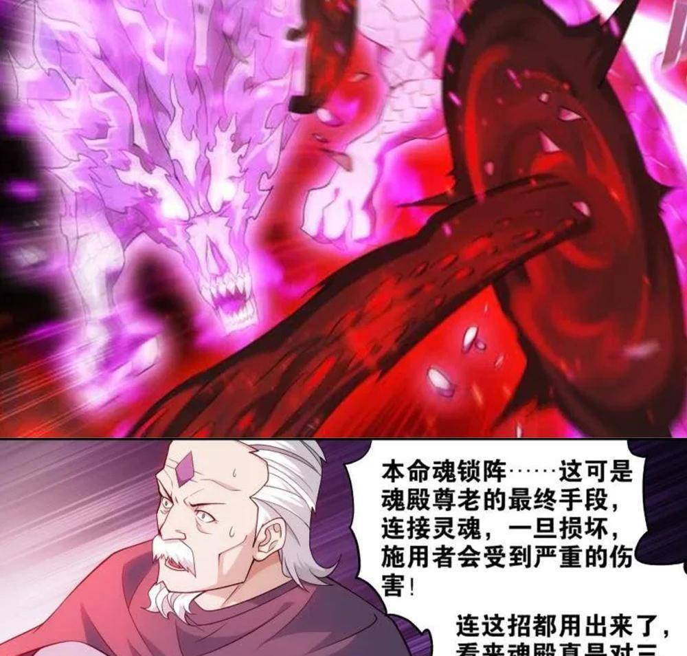 说到本命魂锁阵,这是魂殿尊老独有的本命技能,只要不是在最危急时刻,任何一位尊老都不会使用这种以命相搏的技能,本命魂锁阵连接着灵魂,只要魂锁阵受到损伤,那么施法者就会重伤,甚至是灵魂消散,导致施法者魂飞魄散,瞬间死亡。而慕骨在被骂之后,因为没有其它可能收服三千焱炎火,所以慕骨只能以命相搏,施展本命魂锁阵,来洗刷耻辱完成殿主所授的任务。