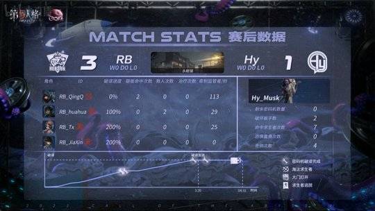 最终,RB以1胜1平1负(13:11)的比分击败Hy,获得本场比赛的胜利。