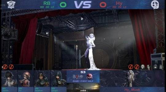 Hy的求生者选择了古董商、舞女、杂技演员、大副(BAN梦之女巫);RB的监管者Yan选择了渔女。(BAN勘探员、先知、佣兵、调酒师、野人)