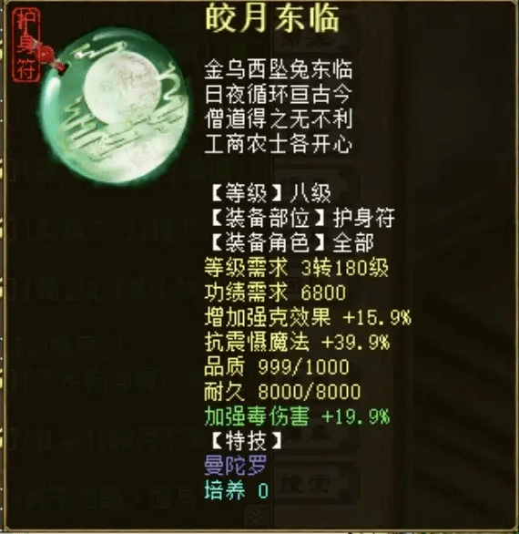强毒伤护身符,带曼陀罗特技