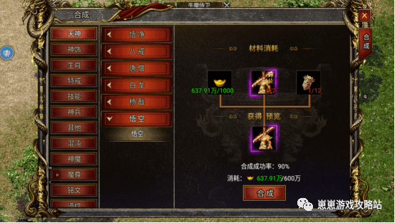 拥有天神碎片后可以在合成里面合成天神装备,悟净,八戒,唐僧,白龙这些天神合成几率为50%,可能会和成功失败的。杨戬,悟空成功几率为90%。
