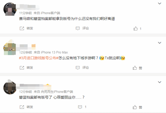 除此之外,也有不少玩家因自己喜欢的游戏没能过审而意难平,期待它们能在下一批公布的版号名单中榜上有名。