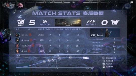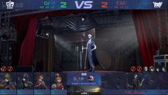 第一局比赛上半轮:FAF求生者对阵Gr监管者