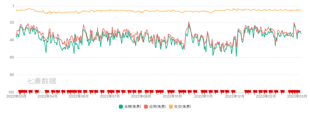 作为对比,Discord在美国App Store则长期稳定在总榜30名左右的身位。