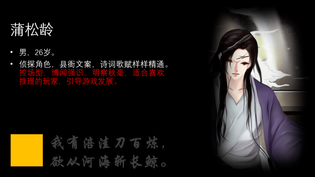 蒲松龄:男,侦探角色,玩家人手不够时可由主持人替代。
