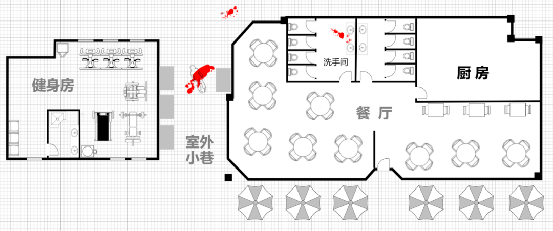 为了帮助玩家更好地体验游戏,剧本杀作品大都会提供相关的地图资料作为玩家们推理的基础,其中最典型的就是案发现场地图。剧本杀中的案发现场一般都在室内(图26),当然也可以发生在室外(图27),依据游戏剧情而定。