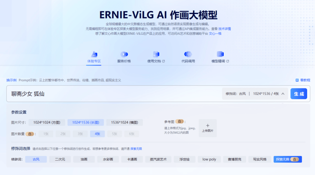 图21 ERNIE-ViLG文生图参数设置