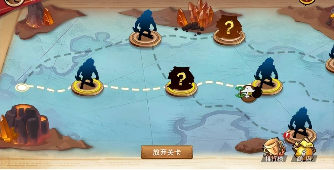 在「失落之岛」地图中,船长可自由选择挑战线路,在航线上会遇到敌人触发战斗、开启宝箱获得奖励、触发事件并获得属性加成等随机事件,每次挑战船长都需要对线路进行选择,并在当下做出最合适的选择才能顺利通关。