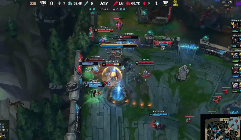 NIP这一手奶妈,有点东西的,对RNG造成了很大的影响,根本打不动,太多无效输出了,很无奈。