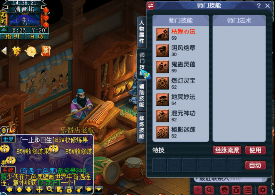 师门技能还算不错,基本都跟着等级升上来了,不过低等级点技能花费还是很少的,基本上任务给的储备金就够点技能了!