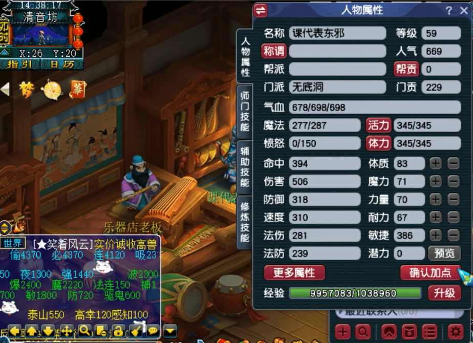 藏宝阁角色上架规则调整之后,最低59级就可以上架,满足了不少59级玩家的需求。本期取出的就是一个59级的角色,门派是无底洞,这属性真的不忍直视!