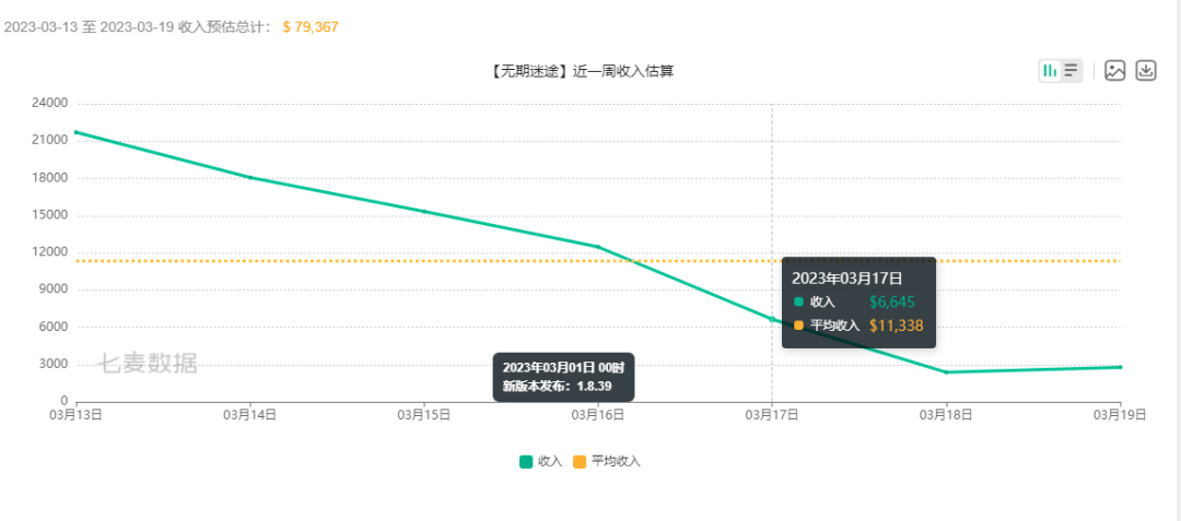 今天是2023年的3月20日,也是无期迷途这款游戏发布后的第221天,而在这7个多月的时间中,这款游戏的确在部分门户网站上掀起了不小的风波,并且也收获了非常之多的关注,大家从某网站上的部分信息浏览量或者其线下活动的参与人数便能有所得见,不过在这还算不错的人气之下,今天也是无期迷途这款游戏在七麦数据这个网站上,IOS平台单日预估流水连续第3天跌落到1万美元之下。
