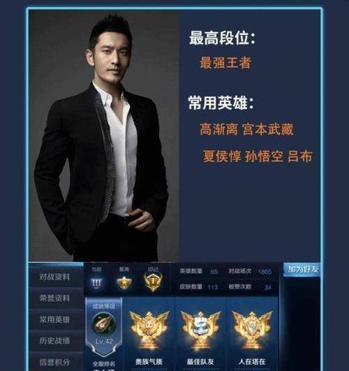 黄晓明是娱乐圈中非常受欢迎的明星。他从偶像团体逐渐转型为如今的实力派演员,付出的心血可见一斑。同时,他也是王者荣耀中为数不多的达到王者级别的高手之一。他从LOL转战王者,只因有baby的带领。他不愧是出了名的护妻狂魔。