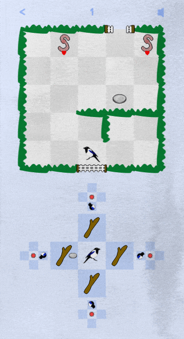 游戏简介:扮演一只好奇的喜鹊,在地图中收集闪亮的小石头。游戏以回合制形式进行,请谨慎决定每个轮次的行动:避开敌人或是与他们战斗?保命要紧还是富贵险中求?而作为主角的你,会做出什么样的选择呢?
