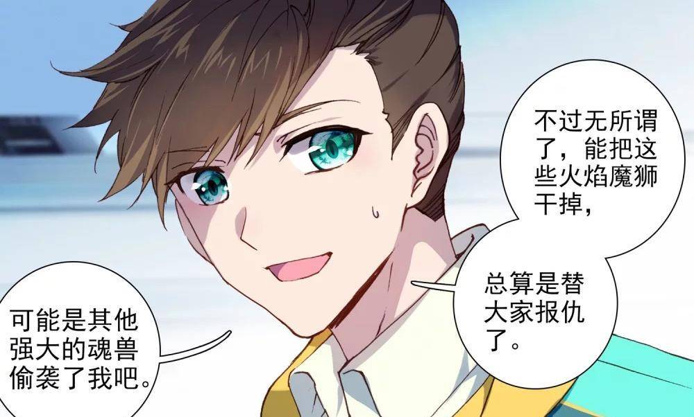 就这样在唐舞麟伺机而动的计划之下,古月、许小言、谢邂都在等待最佳时机,随着魂尊小队与火焰魔狮的人类下降,最后魂尊小队只剩下两位成员,火焰魔狮也寥寥无几了,于是唐舞麟果断出击,直接KO千年实力的火焰魔狮,不仅让魂尊小队陷入震惊之中,而且还让火焰魔狮陷入狂暴状态,使得火焰魔狮直接除掉魂尊小队中的一员,只剩队长一人。