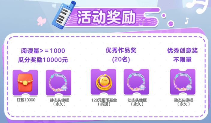 谁说拿着琴的才算梦响家?不演奏没关系,欣赏别人的作品也别有乐趣~活动期间浏览蛋仔梦响家音乐作品,不仅能够认识更多游戏同好,一起组队上分交友,还可获得【抽奖券】,抽取专属于你的奖励!蛋币奖励、精灵之声头像框等多重好礼等你来拿。还在等什么?赶快行动起来~