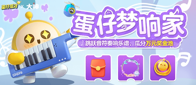跳跃音符,奏响乐谱,大神助力每一个蛋仔大梦响家!3月18日至4月9日,登录大神APP即可参与投稿《蛋仔派对》演奏作品或来围观,领取属于你的大神头像框和蛋币奖励,还有万元奖金池等你瓜分!