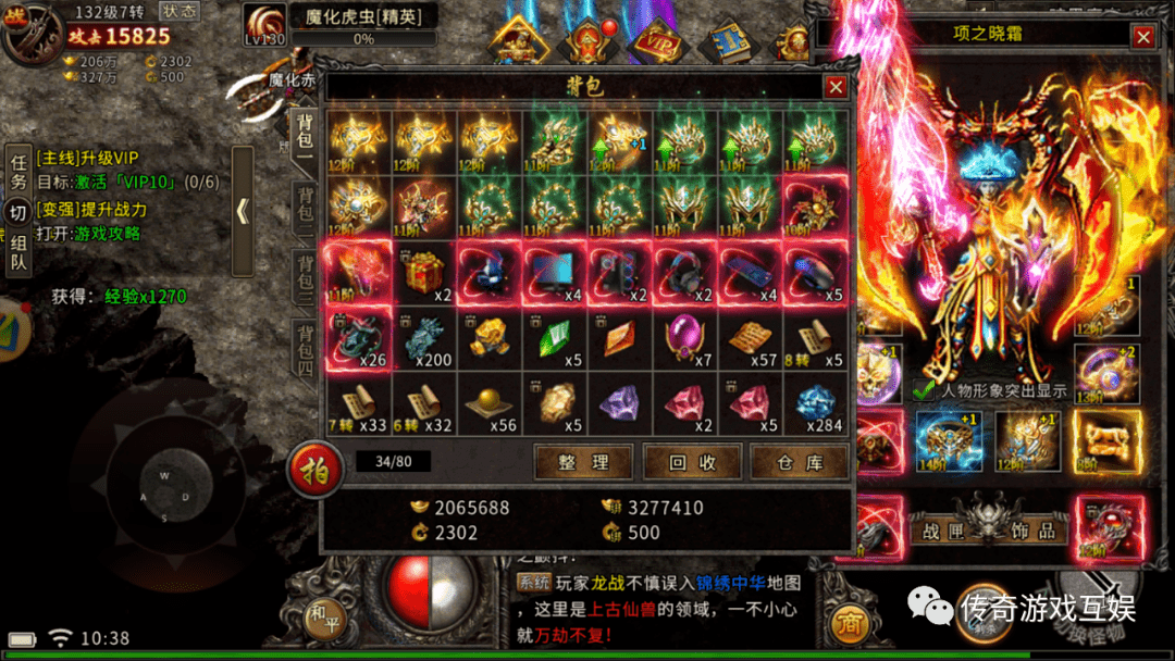 还有更重要一点,此游戏没有回收交易群,所有装备元宝灵符和绑定灵符都是在行会里找行会会长或者行会成员进行回收。