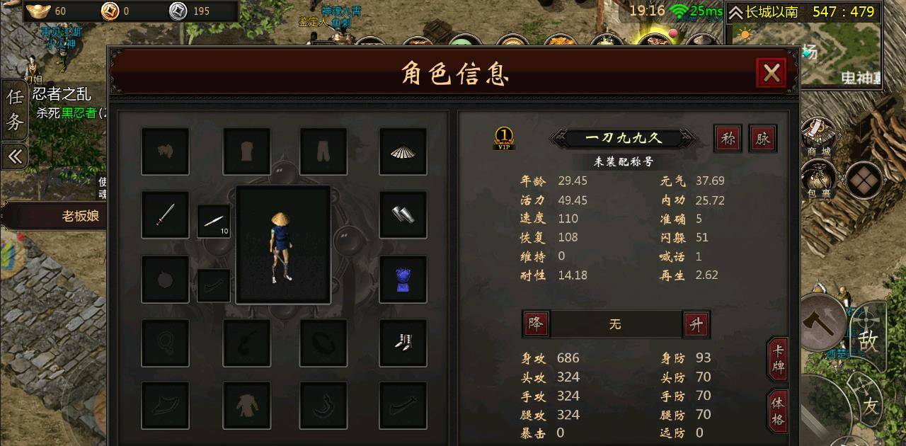 游戏是没有等级这种说法的,取代的是游戏的元气属性。元气只能通过练武和在线。元气决定了你能不能下副本,一天的副本时间决定了你当天的最高收入。前三天一定要一直在线,所有的攻击类武功都要练满,不然无法跟上服务器的总体进度,练功不推荐去使用双倍经验丹。