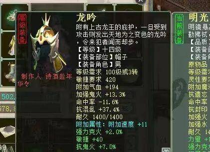 这次咱们再来看一个帽子,加敏速51,要知道该帽子还未打套装,如果打上再洗套装属性加敏速5的话,那就是56,所以说他是全服第一十四级帽子也没什么毛病。