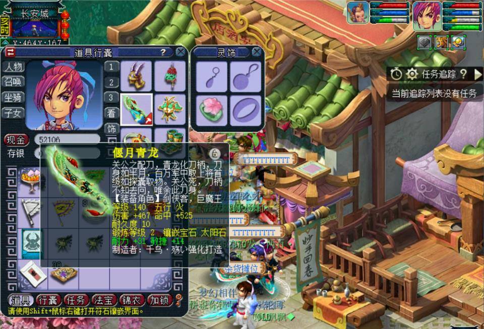 前号主估计也是一位打图铁公鸡,武器装备都不舍得配置好一点的,一把140级白板武器都不舍得打多几段宝石,耐久度都没有了。从属性双加来看,伤害467,命中525,附加耐敏双加45,打图还是可以的。