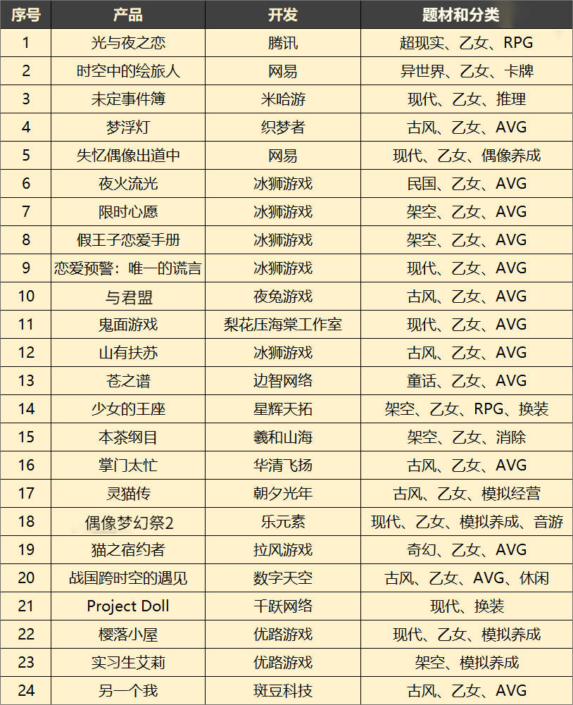 事实上,从2019年开始,包括腾讯、祖龙、完美世界、网易都相继启动了不同规模的女性向游戏项目。