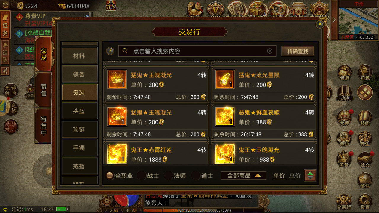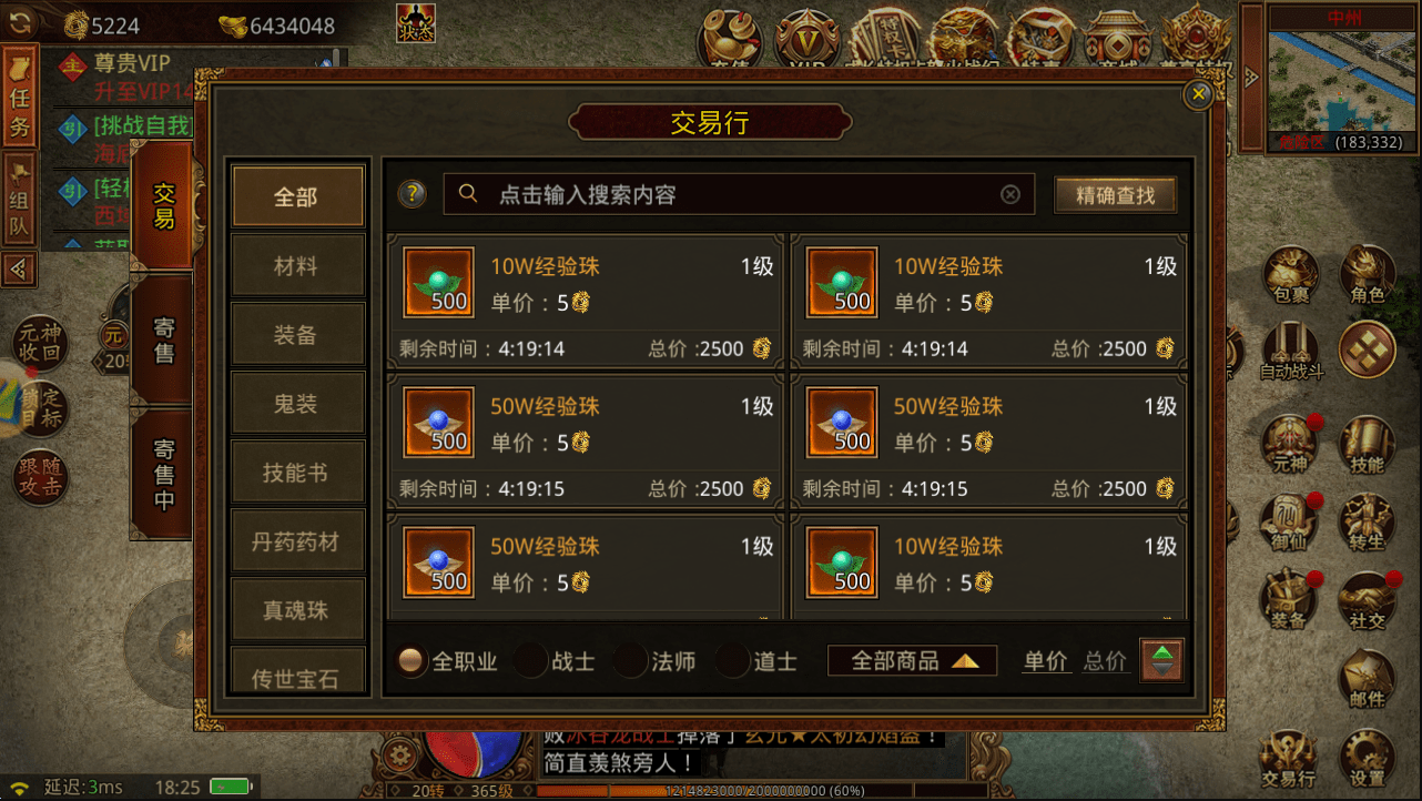 进服首充顶赞是必须的,然后充个大几十到百十来块钱的灵符,主要用于前期开狂暴和点神魔,转生完带上送的装备就可以进入副本刷怪大宝了。稀有材料,像强化石、洗练石、高阶转生石甚至是经验卷都是大家的抢手货,爆出的装备可以回收得元宝,运气好爆出极品装备的话晚饭随便加几个鸡腿不是问题。配合顶赞范围拾取、自动回收让打金效率变的更加高效