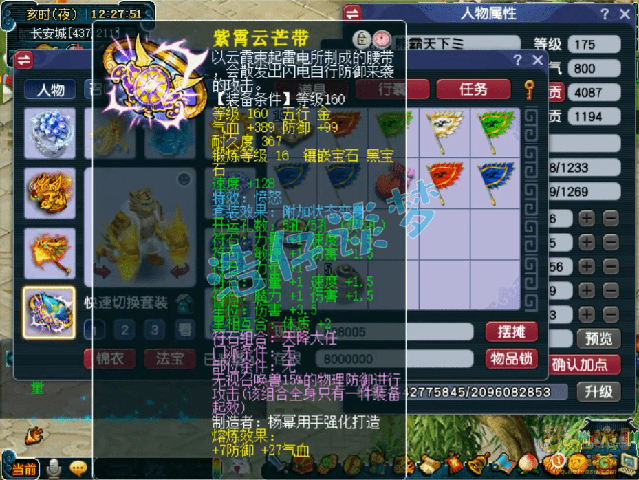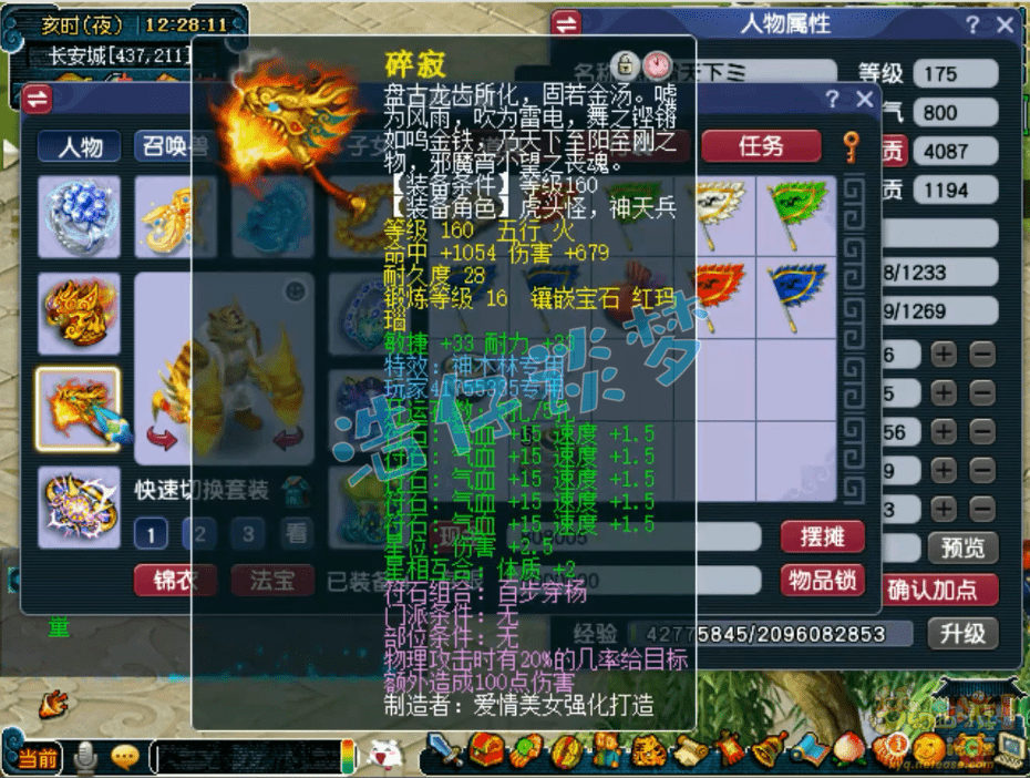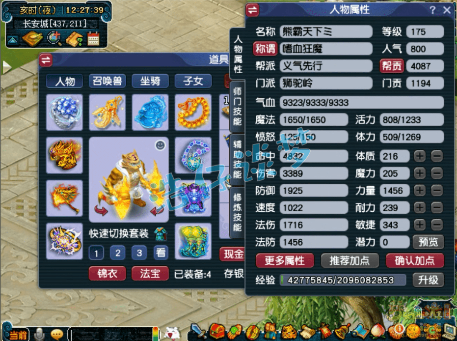 175级狮驼岭无符面板属性,打符之后有3600左右的伤害,速度1150左右,攻击高速度快,这才是三攻物理系的玩法!