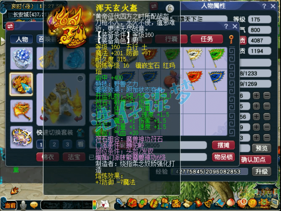 160级诅咒之亡变身套铠甲,力敏双加73,打了16锻月亮石。