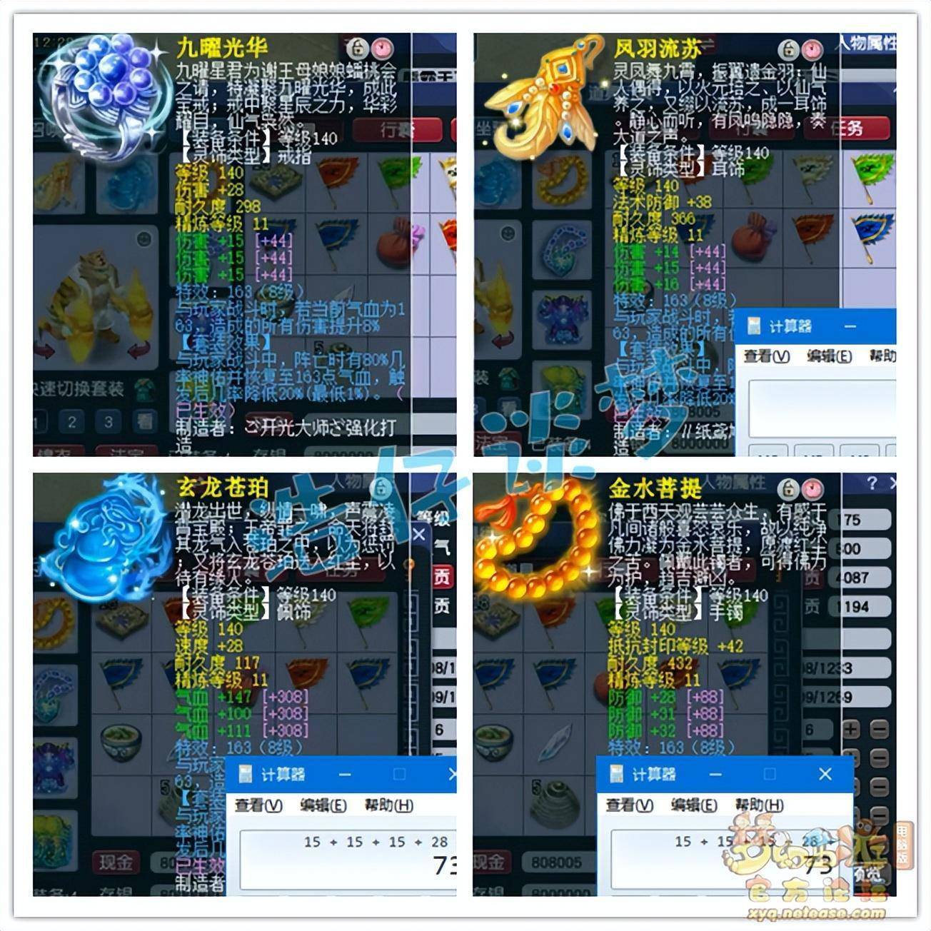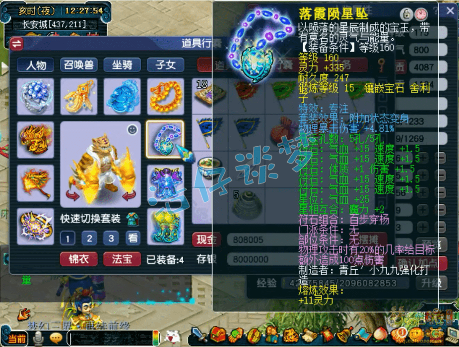 戒指和耳饰也是凑齐了七伤害,佩饰下排三气血,手镯下排三防御,全部打了11锻星辉石,特效8级163。