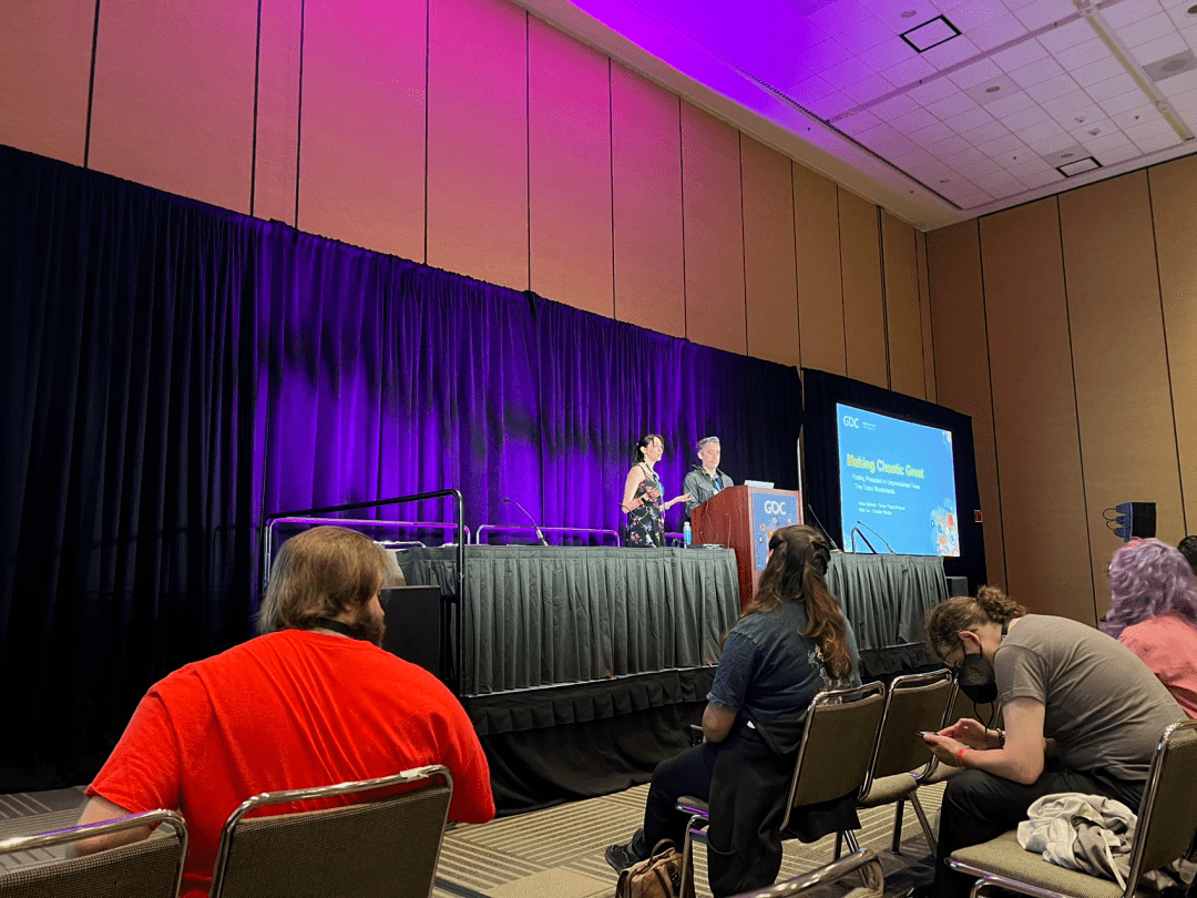他第一场听的是生产力要素峰会Gearbox公司创意总监和产品负责人一起分享的《让混乱变得伟大——小缇娜的奇幻之地团队如何在这个时代寻找先例》。他们主要讲述了团队如何在不稳定时期做交付的经验教训,围绕妥协、同理心、健康几大主题展开,并逐渐扩展到如何更好展开创意,如何围绕质量进行生产等关键问题。演讲者认为,作为团队的管理者,接受冲突和在否定前进行协商十分重要,同时还要降低应力水平,增强跨学科同理心和推理能力,消除团队中的毒性因素。他还特别提到,团队领导者需要更关心员工,因为世界很危险,而关心会让团队更好。
