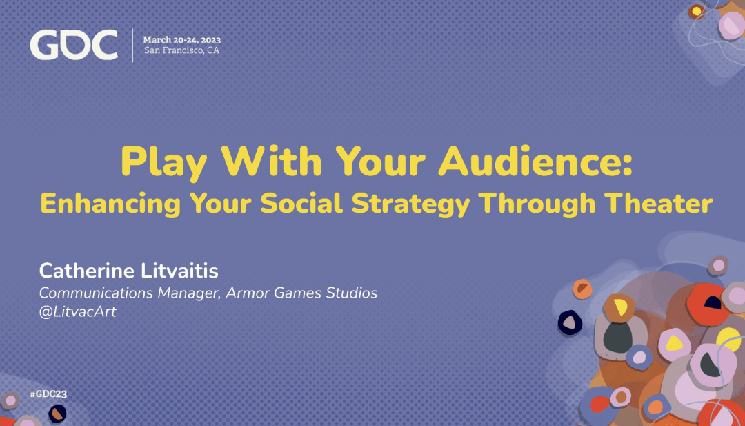 Armor Games Studio公司的Catherine Litavatis分享了“Play With Your Audience: Enhancing Your Social Strategy Through Theater”,鱼冰也作为听众在场下做了不少记录。Catherine首先介绍了社交媒体管理和表演之间存在许多共通之处,还讲述了如何用演员的许多技巧来进行社区管理,提升你游戏的品牌影响力。鱼冰总结了演讲后获得的启发之处:给官方号做人设可以增强和玩家之间的互动,能够更生动有趣;不要害怕表演,官方号也可以轻松地作为各种“舞台上”的一员;弄清楚你的人设可以给玩家和整个社区带来什么价值,并且针对这些价值来设计你的官方号人设,然后将计划落到实处;用“你说的没错,并且......”这样的沟通方式来引导与粉丝更加深入的交流。