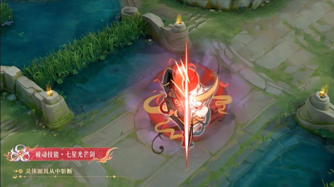被动就是之前爆料过的,面具被斩断的特效。之前还有一个“杀”字的繁体,好像被取消掉了。应该正式上线的爆料中没有看到。